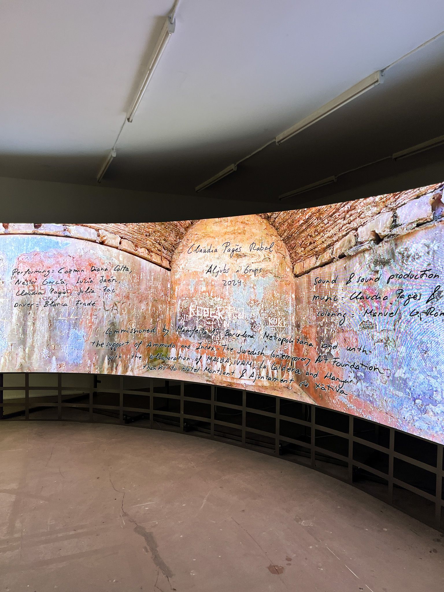 Claudia Pagès Rabal skapar scenarier där flera lager, dialoger och koreografi öppnar nya möjligheter för konsten. Hennes videoverk utforskar identitet, infrastruktur och historia, men också relationer och sociala koder, där tiden kondenseras med performativa ögonblick som rymmer århundraden. Utställningen ALJUB är hennes första i Norden och kretsar kring cisternen som idé och objekt. Videoinstallationen om cisternen i Xàtiva visar platsens förändrade roll och får funktion som tidsbehållare, samtidigt som kroppar, språk och historia förvandlas till koreografi.