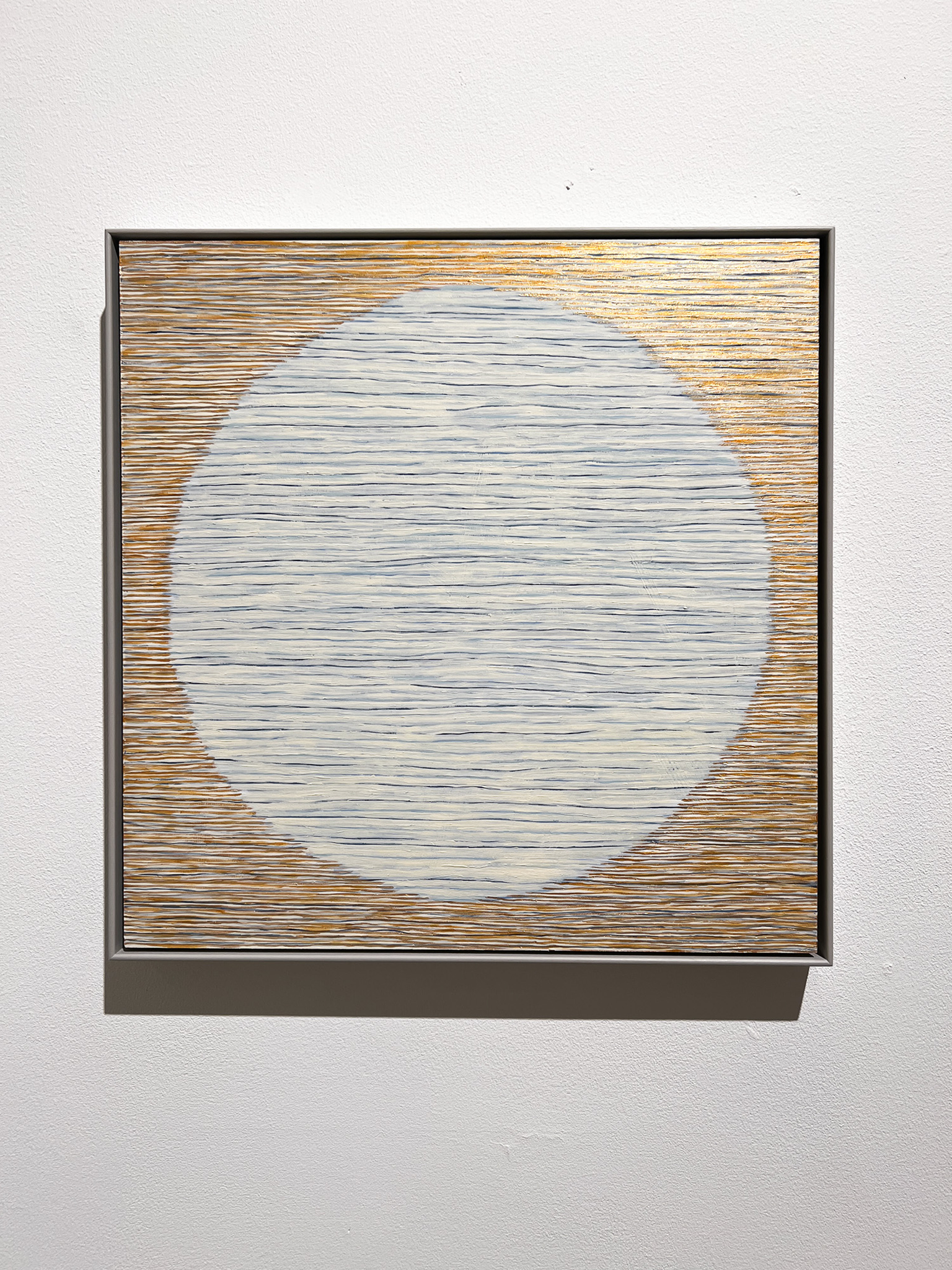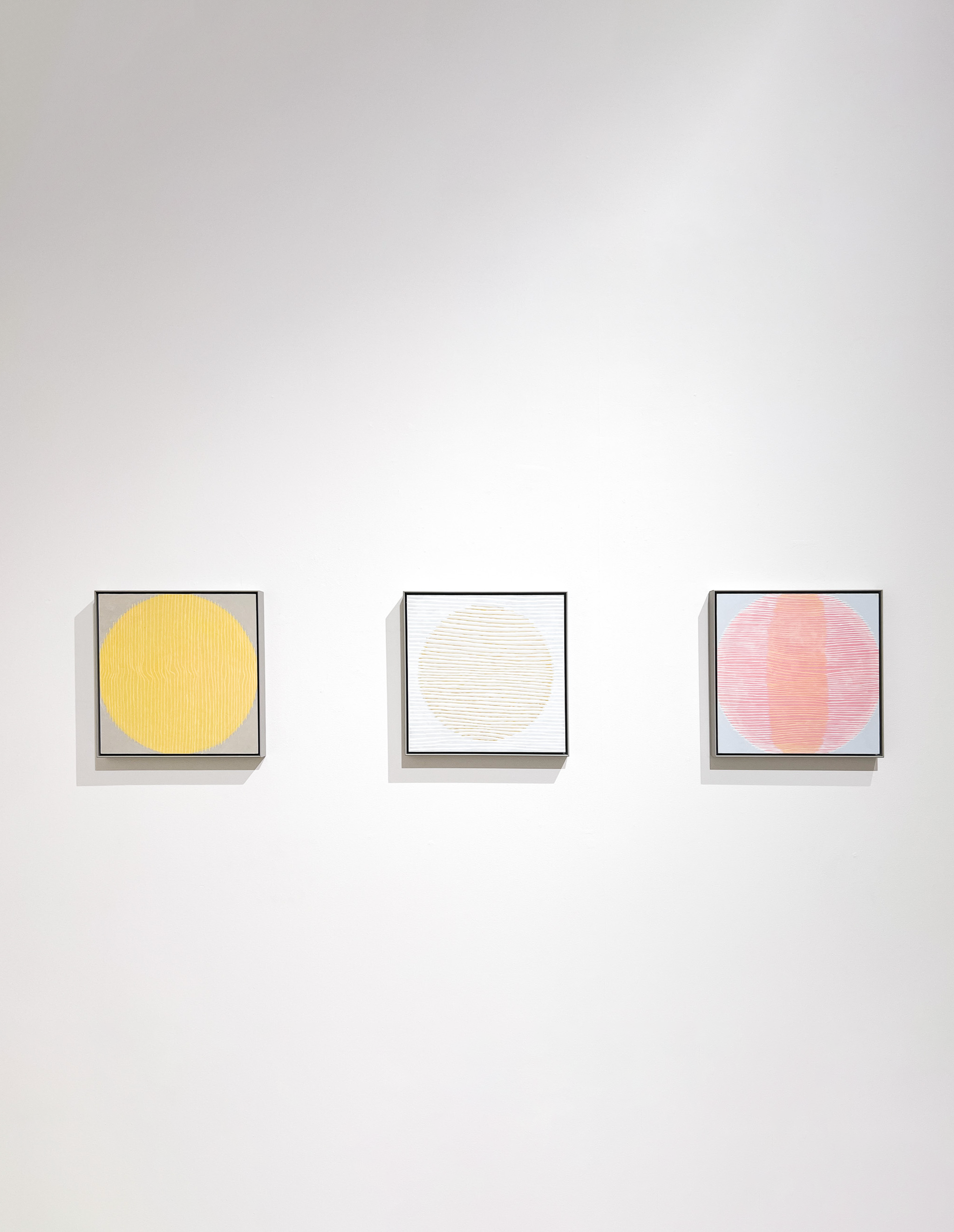Ulrica Lundbergs utställning “Epiphanies” utforskar begreppet epifani, en plötslig uppenbarelse av djupare betydelse. Hennes nya målningar bygger på cirklar och horisontella linjer i ett finstämt raster, där färgernas kontraster skapar vibrationer av ljus och ljud. Varje verk liknas vid ett instrument, där dess strängar måste stämmas och ljuset slipas fram genom spelet mellan färg och linje. Procesen är intuitiv, inkännande och kräver omsorg, och inspirationen finns i koncentration på känslan bortom konstvärldens brus.