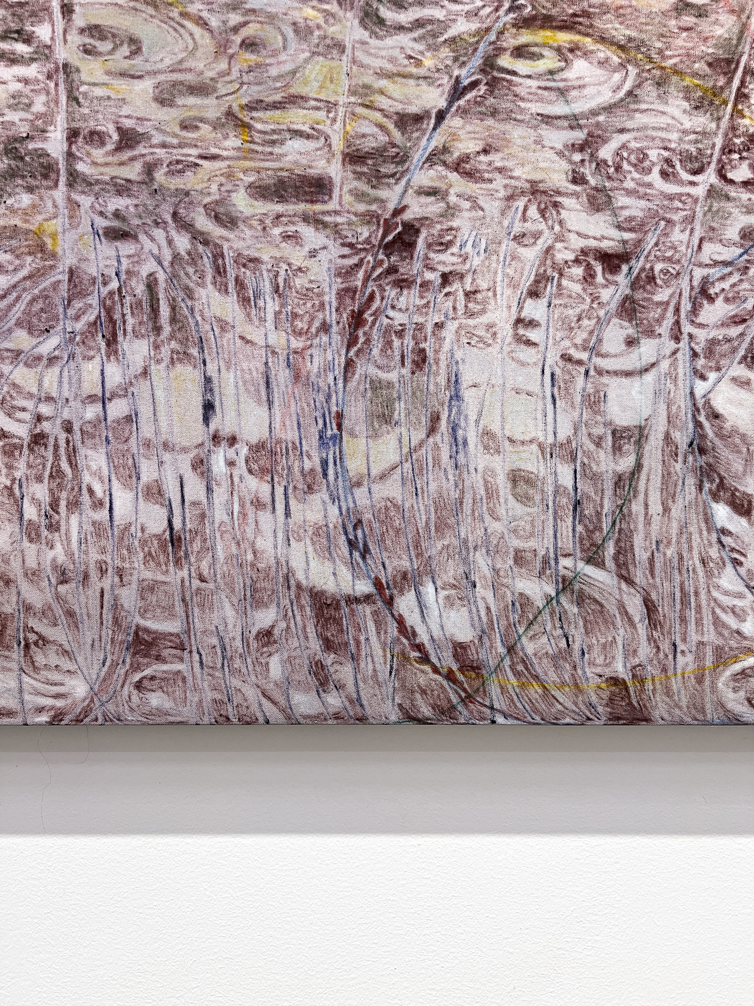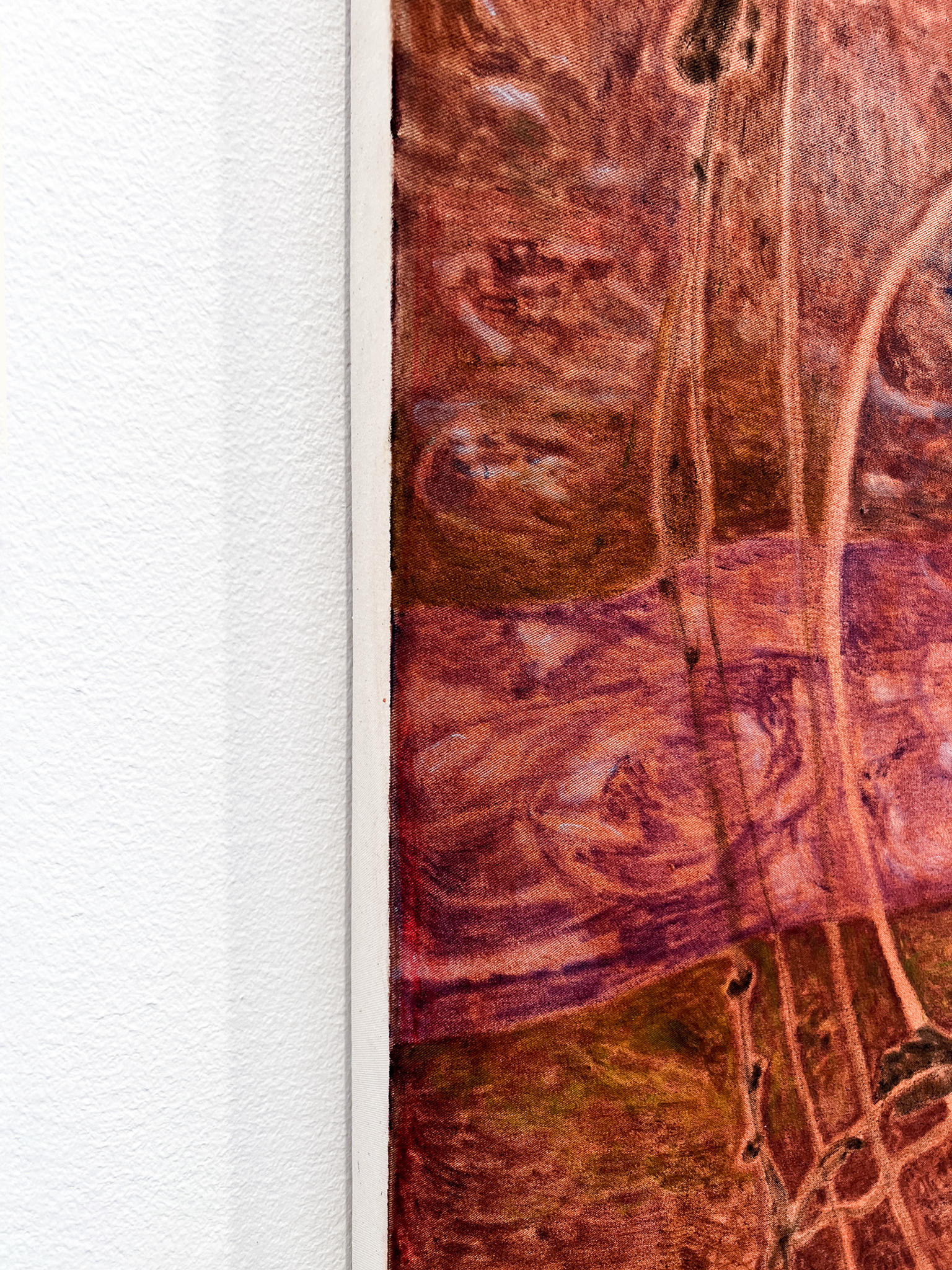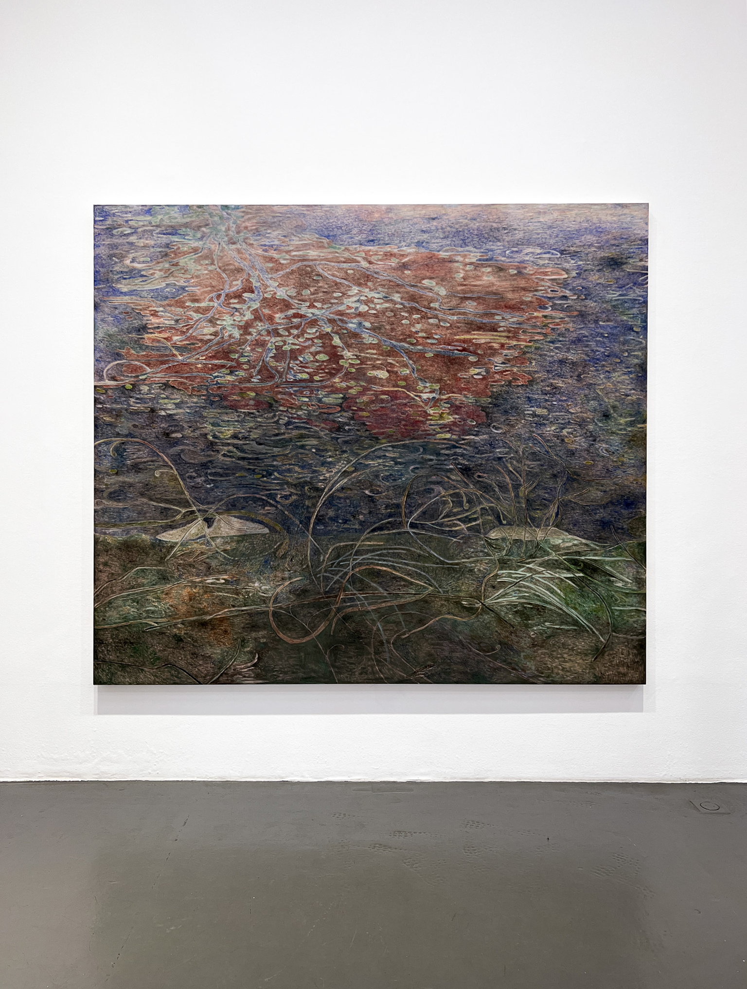 Utställningstiteln Sly fungerar på både svenska och engelska, och refererar till både motiv och uttryck. I Ebba Svenssons målningar möts betraktaren av ett membran som delar bilden i ett framför och ett bakom, där snårighet och rotsystem slingrar sig mot både yta och djup. Reflektioner och dubbla lager speglar en ständigt föränderlig verklighet. Hennes stora verk balanserar mellan föreställande och abstrakt, där materialiteten dominerar: oljefärgen förs på med korta penseldrag och skapar ett unikt, vibrerande måleriskt brus.