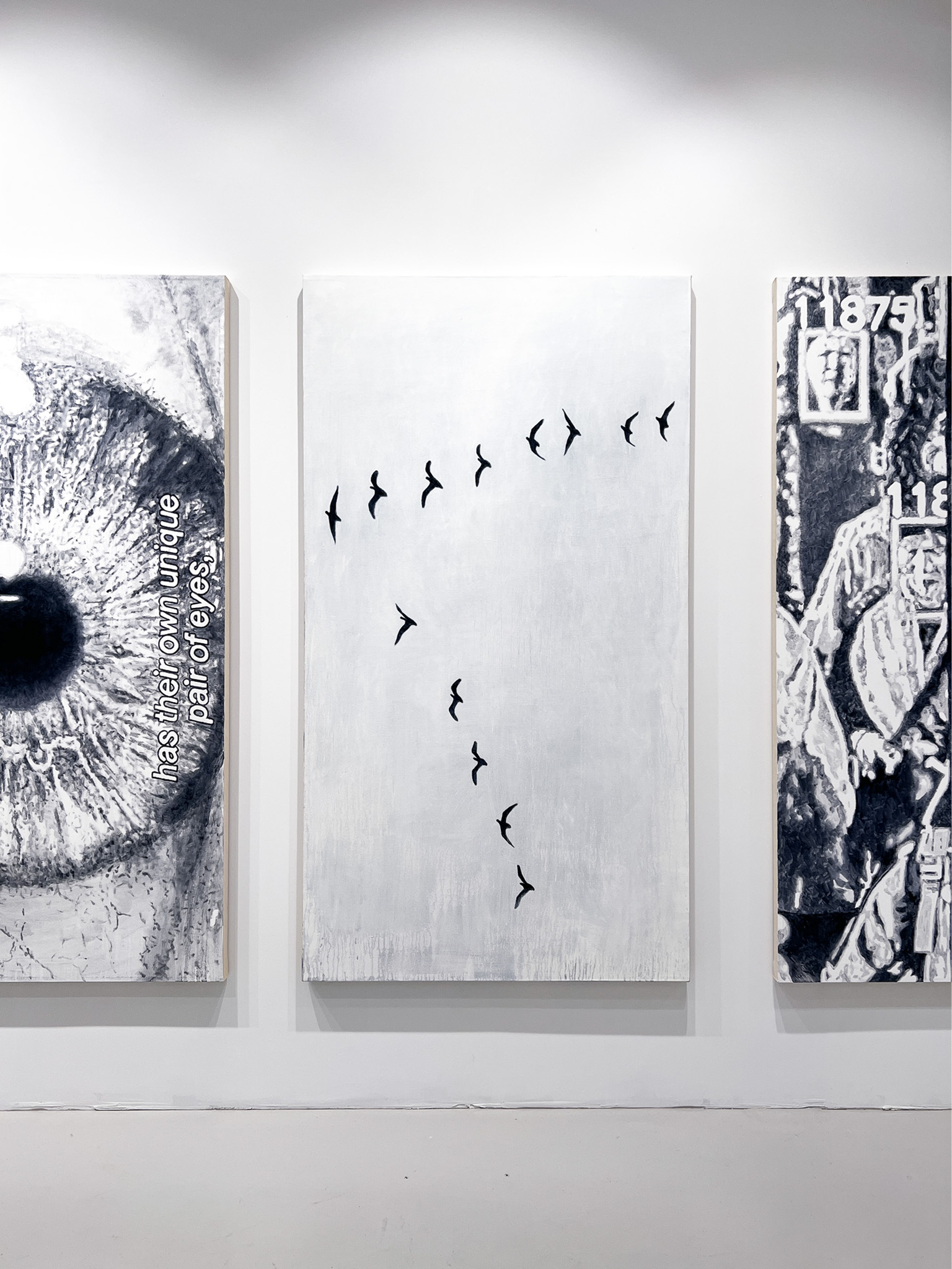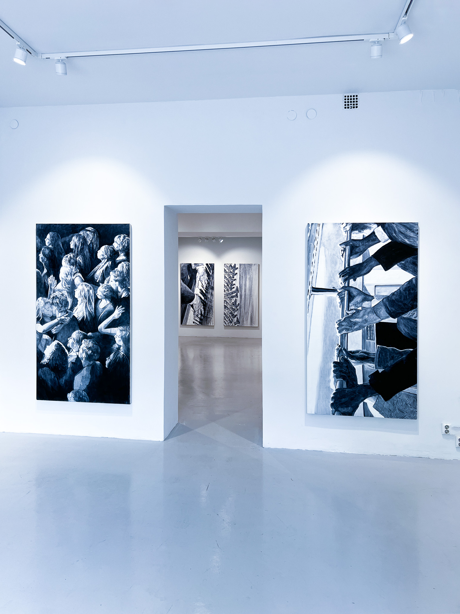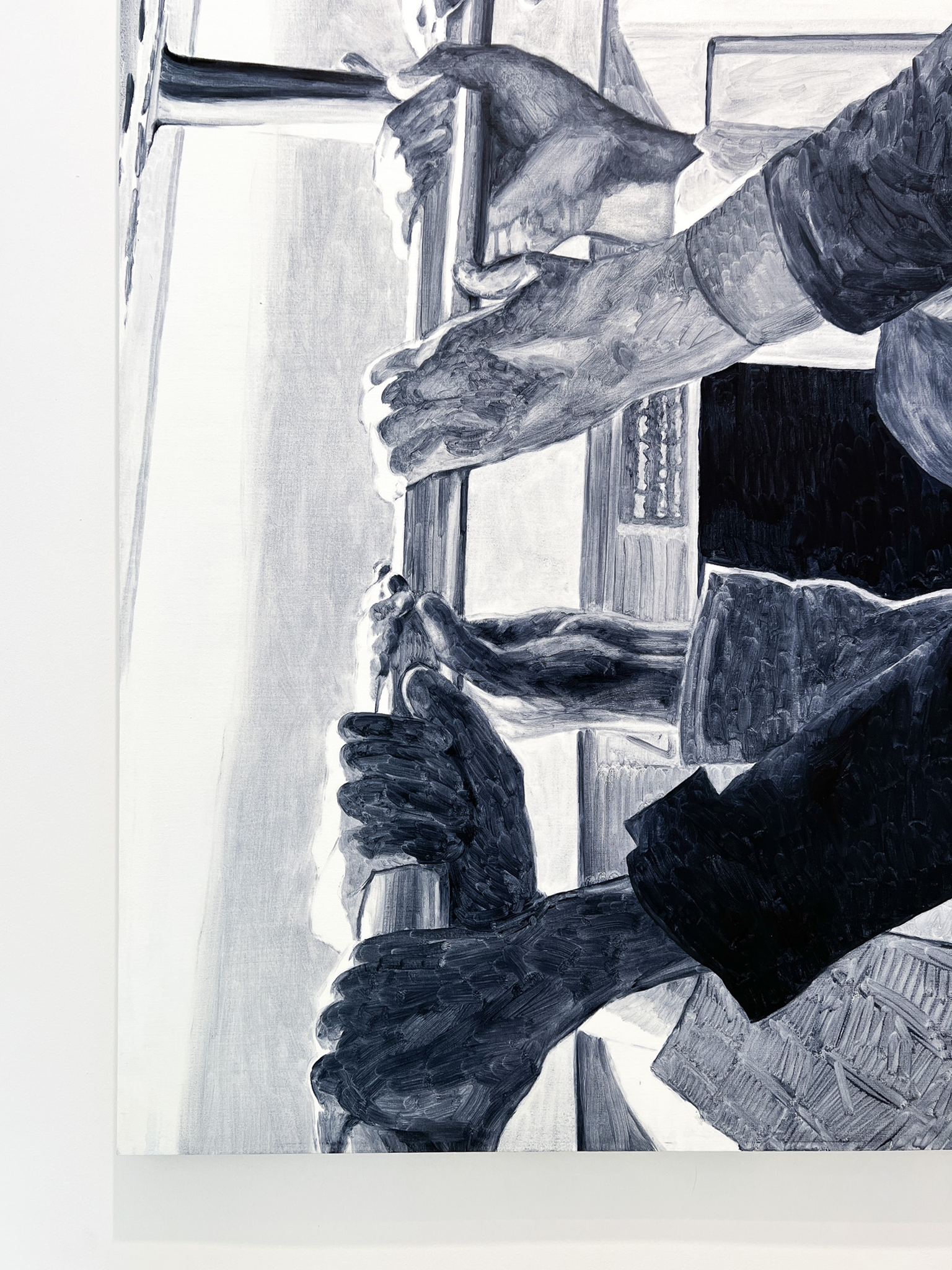 Med ett tumgrepp rör vi oss genom en digital bildström där fragments av vår vardag sparas, delas och ibland förblir anonyma. I Johnny Höglunds nya verk transformeras denna flyktiga digitalitet till måleri, där bilder som screenshots omvandlas från snabba, anonyma intryck till något fysiskt och varaktigt. Genom att använda måleriets långsamma process re-kontextualiseras det digitala, och visuella fragment ges ny betydelse. Höglunds utställning utforskar samspelet mellan teknologi, minne och materia, och uppmanar besökaren att långsamt betrakta den visuella samtiden.