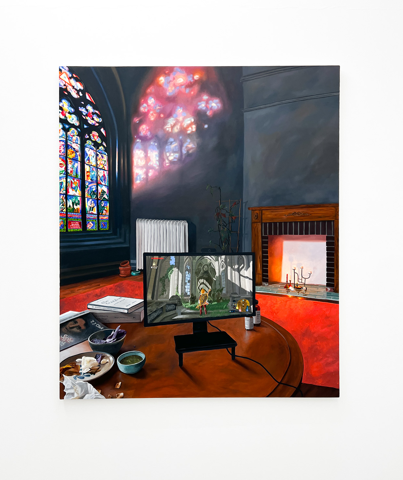 Kelsey Shwetz’s utställning “Reception” på Coulisse Gallery utforskar betydelsen av mottagande, både bokstavligt och känslomässigt. Hennes färgstarka målningar skildrar ett överflöd av flora, ljus och skugga, samtidigt som tomrummen laddas med möjligheter till möten. Målningarna, ofta digitalt fotograferade, skapar en känsla av närvaro och realism som leder till reflektion kring väntan, begär och symbolik. Utställningen bäddar för ett personligt tilltal där ljuset spelar huvudrollen; Shwetzs verk blir en inbjudan att vara närvarande och upptäcka verklighetens förvandling.