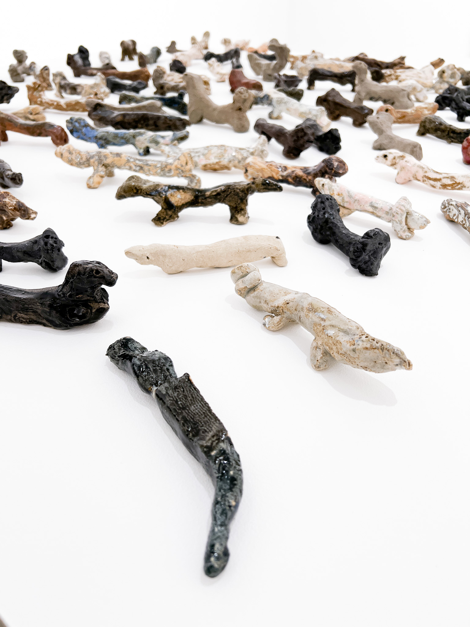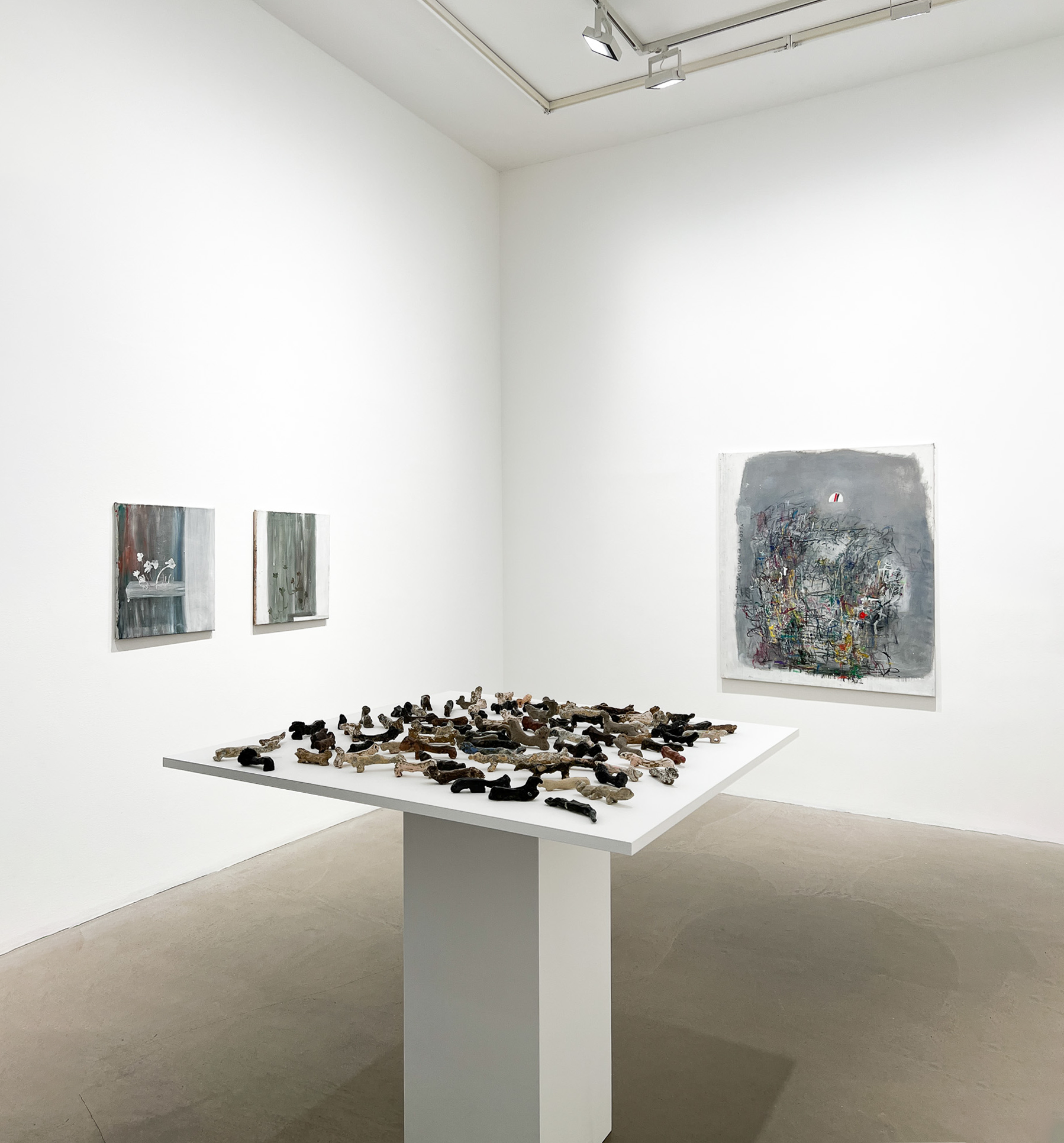 Kristina Eriksson lyfter fram det obetydliga, ger små ting värdighet och närvaro i både måleri och skulptur. Noggrannhet och tvekan prägl ar processen – varje val tar månader och bygger på återhållsamhet. I stället för att sträva efter det vackra gör hon smörknivsunderlägg: okonstlade, vardagliga och avväpnande. I hennes verk ryms både livets klumpighet och stundens ögonblick: ett “nu” som kräver distans. Eriksson visar att det är i små g ester vi hittar mening och närvaro.