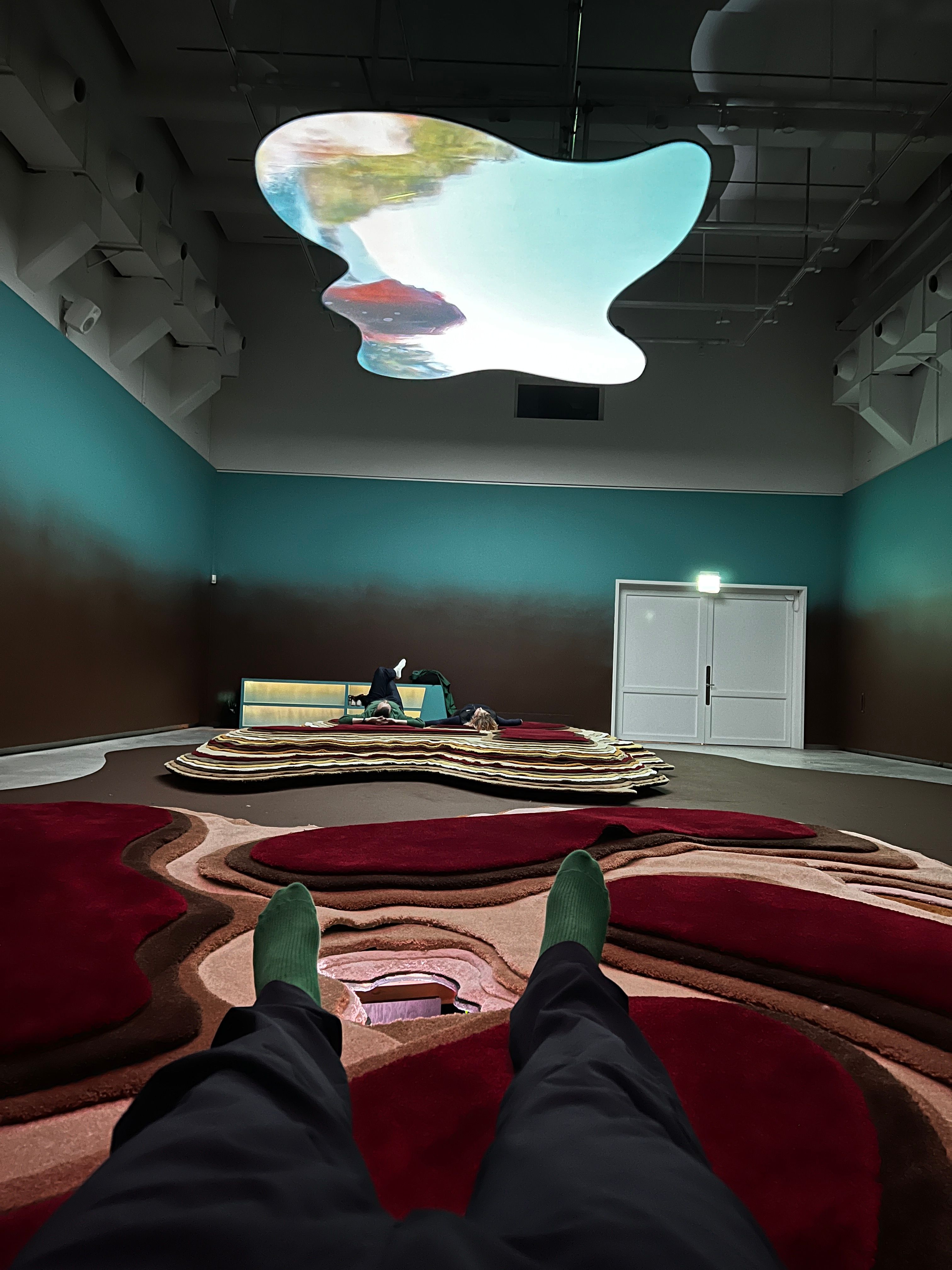 Utställningen Gravity, Be My Friend av Pipilotti Rist på Accelerator visar två verk i olika storlekar — en stor audiovisuell installation som rymmer över 100 personer och ett litet verk i restaurangen. Verken utforskar rörlig bild, rumsliga effekter och perception, ofta med koppling till natur och kropp. Rist undersöker identitet, makt och sårbarhet som kreativ kraft, och vill skapa en mjukare självupplevelse och gemenskap. Verket Tyngdkraft, var min vän handlar om hur vi upplever bilder när vi ligger ner och är från 2007. Rist är en pionjär inom rumslig videokonst.